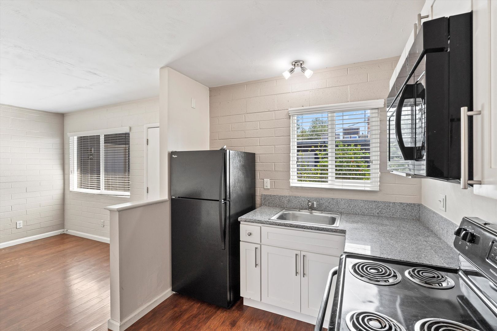 Beautiful and contemporary one bedroom apartments! The Station @ Ironhorse is a recently renovated apartment complex featuring one bed one bath apartments which have been redesigned with a contemporary feel. Each apartment is 580 square feet with double pane windows, granite counter tops, upgraded cabinets, newer appliances, and free WiFi. Units come with either grey slate tile or laminate wood flooring with carpet in the bedroom. Amenities include a pool, on-site laundry, and reserved gated parking for an additional fee and upon availability. Close to the U of A, Pima Community College, 4th avenue, and downtown for endless entertainment.